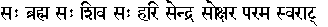 (Sah Brahma Sah Shiva Sah Hari Sendra Sokshara Parama Swaraat)